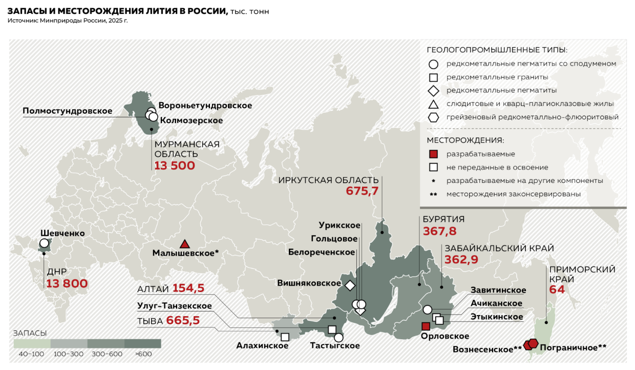 Немаловажный нюанс: заявленные Минприроды 3,5 млн тонн литиевых запасов относятся лишь к рудным месторождениям. Металл из рассолов пока не учитывается официально, поскольку в России нет утвержденной методики оценки и постановки таких запасов на государственный баланс.