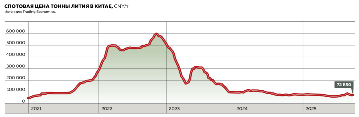 Начальник аналитического отдела инвесткомпании «Риком-Траст» Олег Абелев называет ситуацию 2021–2022 годов пузырем. По его словам, цена свыше $80 тыс. за тонну не отражала реальной ценности производства, ведь себестоимость получения карбоната лития — менее $10 тыс. за тонну.